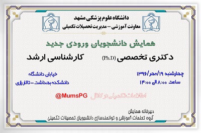 مرحله اول : از ساعت 13 روز پنج شنبه مورخ 6/7/96لغایت 11/7/96 با مراجعه به آدرس سایت http://ums.mums.ac.ir/stdnew مراجعه و فرمهای ثبت نامی را به طور دقیق پر کنند. عدم ثبت نام اینترنتی در بازه قید شده به منزله انصراف از تحصیل می باشد.
