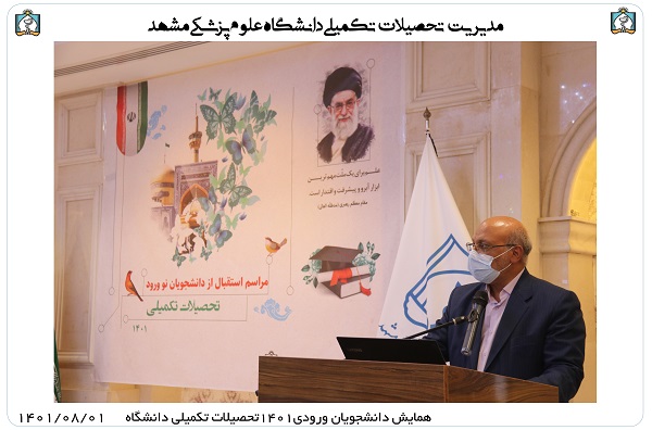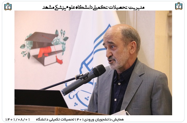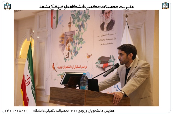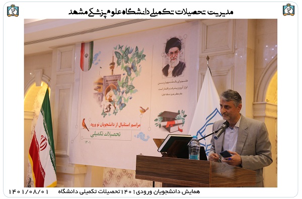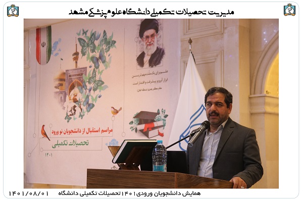 آقای دکتر کیانی ضمن تبریک به دانشجویان جدیدالورود جهت قبولی در دانشگاه علوم پزشکی مشهد در سخنرانی خود اشاره به لزوم گرایش دانشجویان تحصیلات تکمیلی به ایده های نو جهت اجرای پروژه های جدید داشتند.