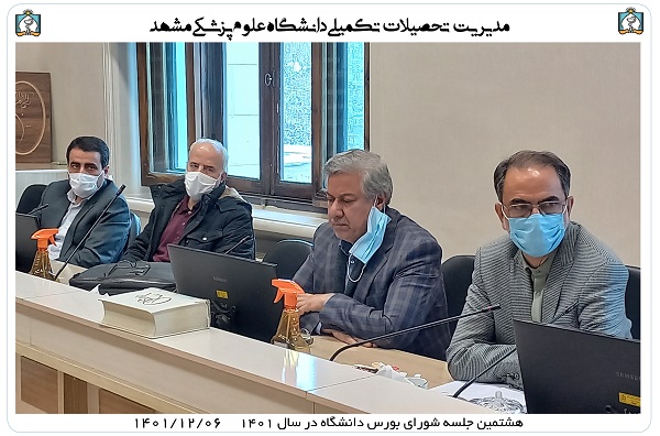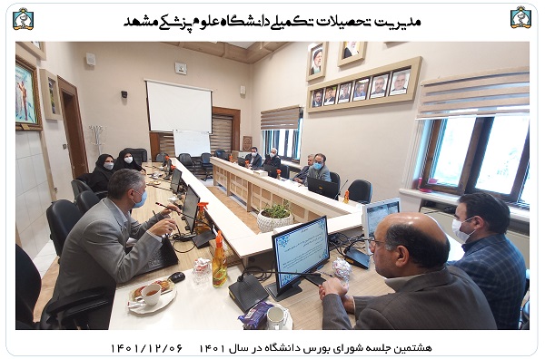 در روز شنبه 1401/12/06 هم زمان با اعیاد شعبانیه هشتمین جلسه شورای بورس دانشگاه برگزار و اولین بورس نوع 1 دانشجویان بین المللی دکتری تخصصی به آقای دکتر عبدالناصر ثنا از کشور افغانستان اعطا شد. شایان ذکر است بورس نوع 1 به متقاضیان توانمند و برجسته ای که قصد ادامه تحصیل در دانشگاه علوم پزشکی مشهد را دارند تعلق می گیرد.