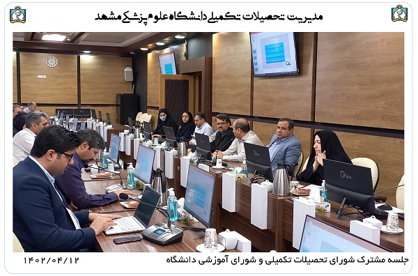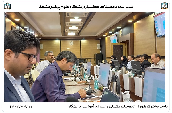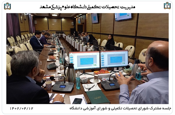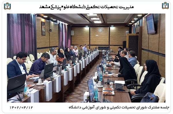 جلسه مشترک شورای تحصیلات تکمیلی و شورای آموزشی دانشگاه در روز دوشنبه مورخ 1402.04.12 با حضور اعضای جلسه شورای تحصیلات تکمیلی دانشگاه، اعضای شورای آموزشی دانشگاه و دبیر ستاد برنامه جامع عدالت، تعالی و بهره وری در آموزش علوم پزشکی کلان منطقه نه آمایشی در محل سالن شورای ریاست دانشگاه برگزار شد.