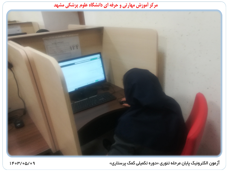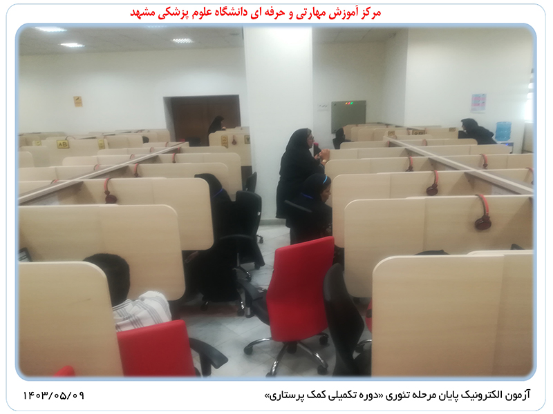 این آزمون در انتهای بخش نظری "دوره تکمیلی کمک پرستاری" به منظور ارزیابی مهارت آموزان به صورت الکترونیک و در مرکز آزمون های الکترونیک دانشکده پزشکی برگزار گردید. در این آزمون که با همکاری مدیریت پرستاری دانشگاه اجرا شد، ۴۵ نفر از مهارت آموزان مؤسسه آموزش مهارتی و حرفه ای "مشاورین نظام سلامت شمال شرق" طی مدت ۴۵ دقیقه به سوالات طرح شده پاسخ داده و بلافاصله پس از اتمام آزمون نمرات خود را دریافت نمودند که شرکت کنندگانی که موفق به کسب حدنصاب نمره قبولی شدند مجوز حضور در بخش عملی دوره را پیدا کردند.
