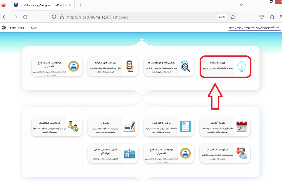 1. پس از جستجوی آدرس مقابل در مرورگر https://sipad.mums.ac.ir