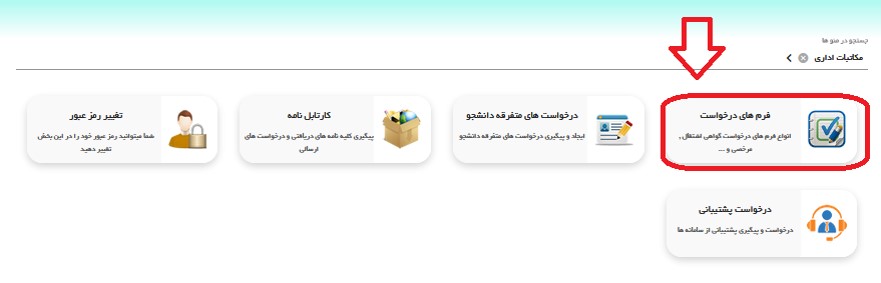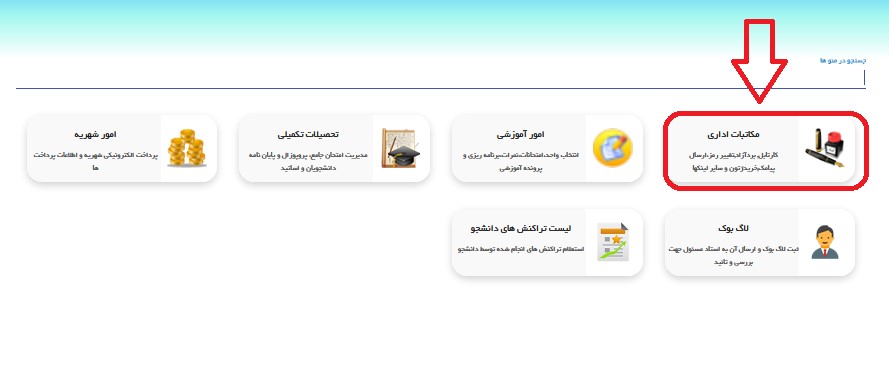 4. همانطوركه درتصوير پائین مشاهده ميكنيد مي بايست بر روي گزينه "مکاتبات اداری" كليك نمائید