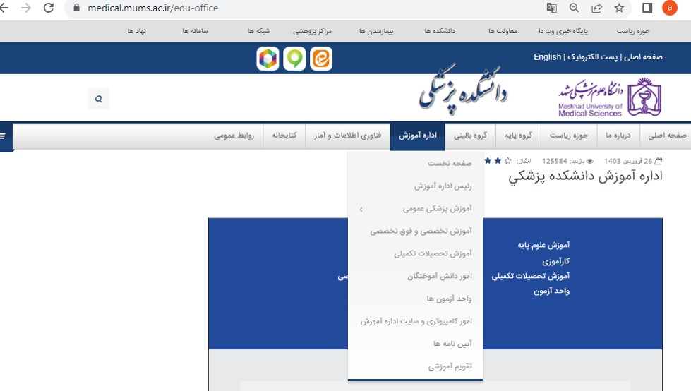 جهت سهولت دسترسی به آئین نامه ها و همچنین شماره تماس کارشناسان آموزشی دانشکده پزشکی میتوانید از لینک روبرو اقدام نمائید https://medical.mums.ac.ir/edu-office