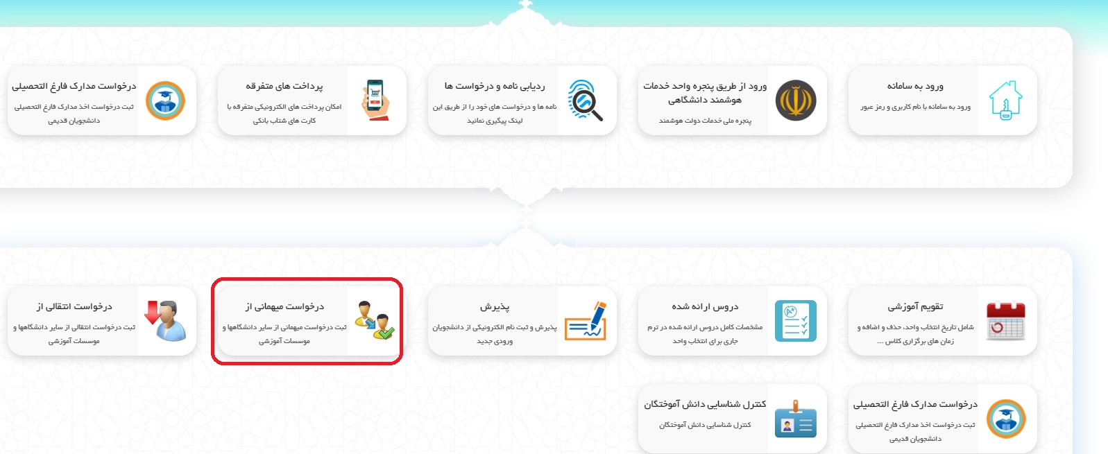 درخواست میهمانی از دانشگاه دیگر توسط دانشجو
