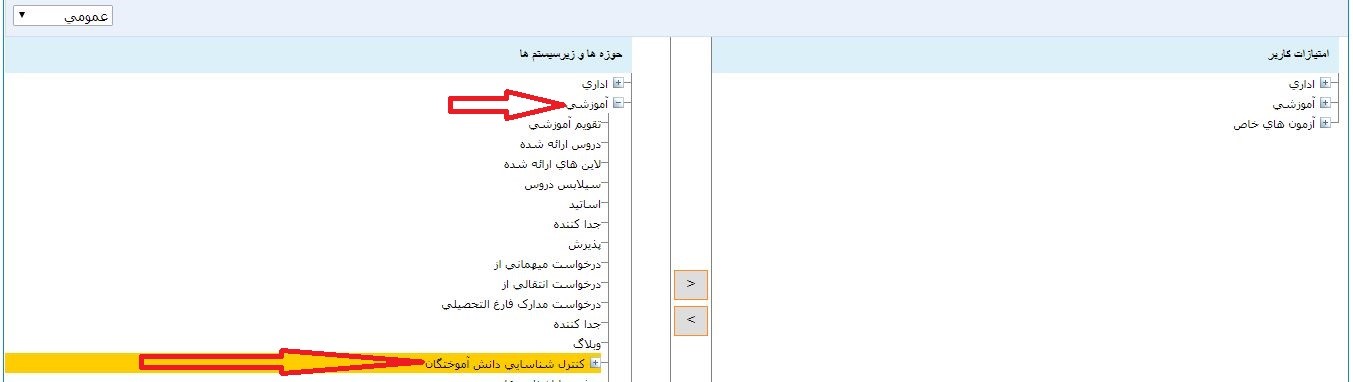 در میز کار عمومی نیز باید حتما این منو را از منوی گروه کاربری ، به گروه کاربری عمومی دسترسی دهید.