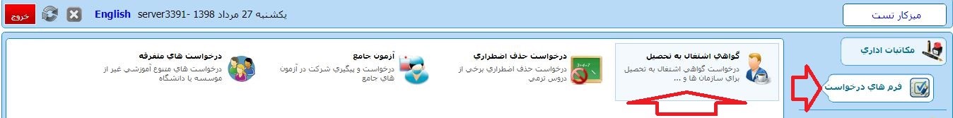 بعد از ارسال فرم گواهی اشتغال به تحصیل این صفحه بسته می شود، برای پیگیری این درخواست دیگر بر روی منوی گواهی اشتغال به تحصیل کلیک نکنید.