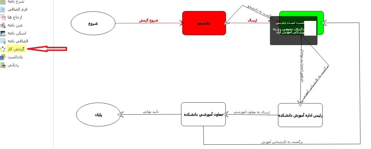 برای نمایش اینکه این فرم در چه مرحله ای است باید بر روی گزینه گردش کار کلیک کنید.