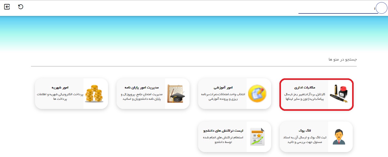 بعد از انجام تمام مراحل تسویه حساب ، دانشجو می تواند از قسمت مکاتبات اداری، کارتابل نامه ، تمای درخواست های خود را مشاهده نماید.
