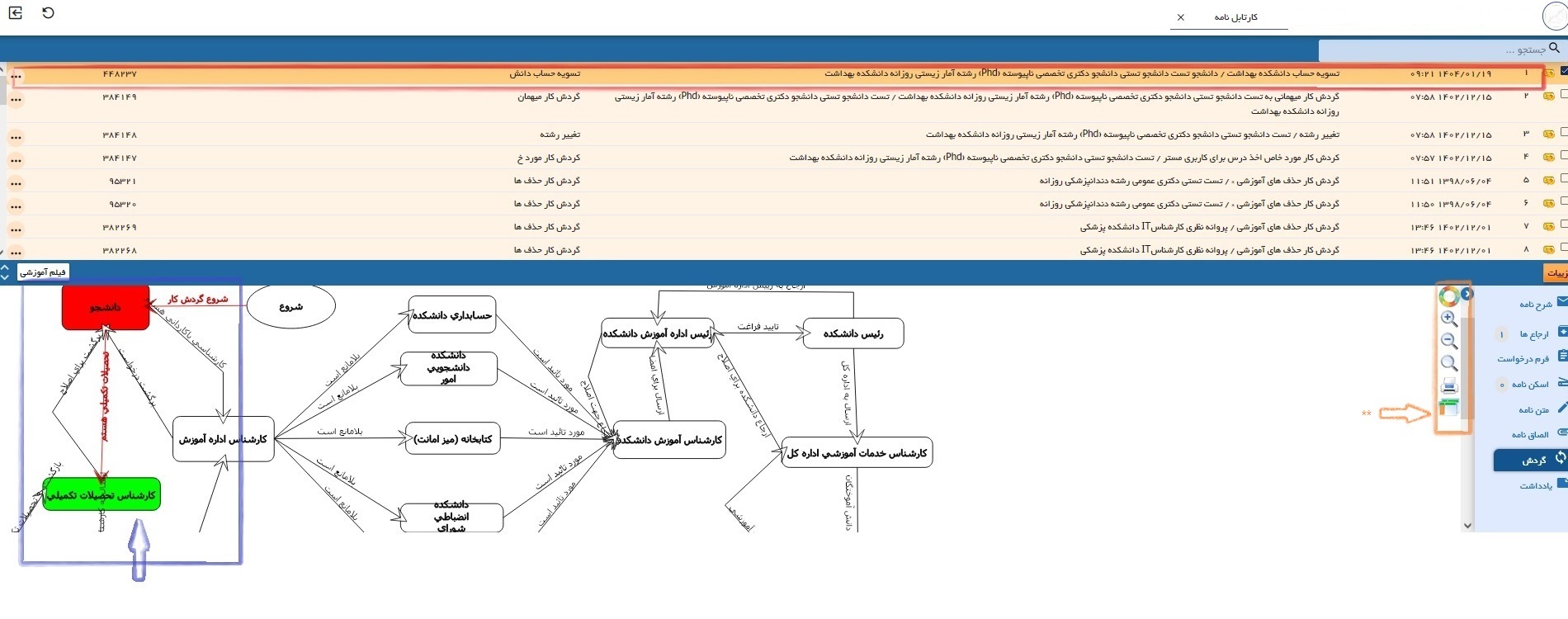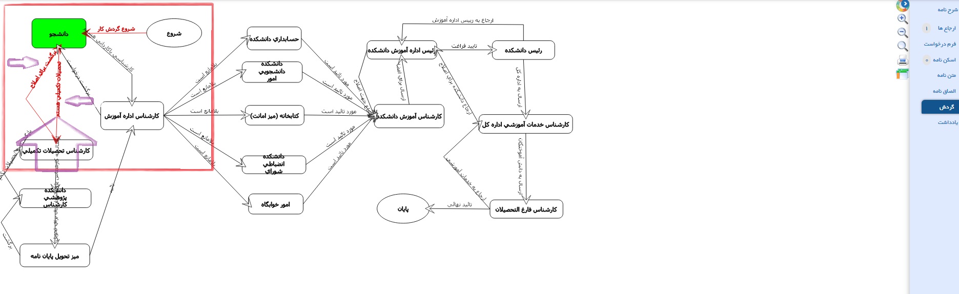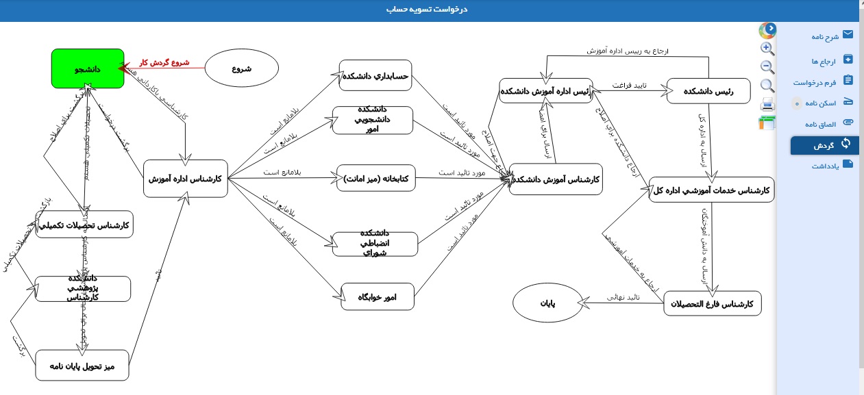 لازم به ذکر است گردش کار برای هر دانشکده ای مغایرت دارد