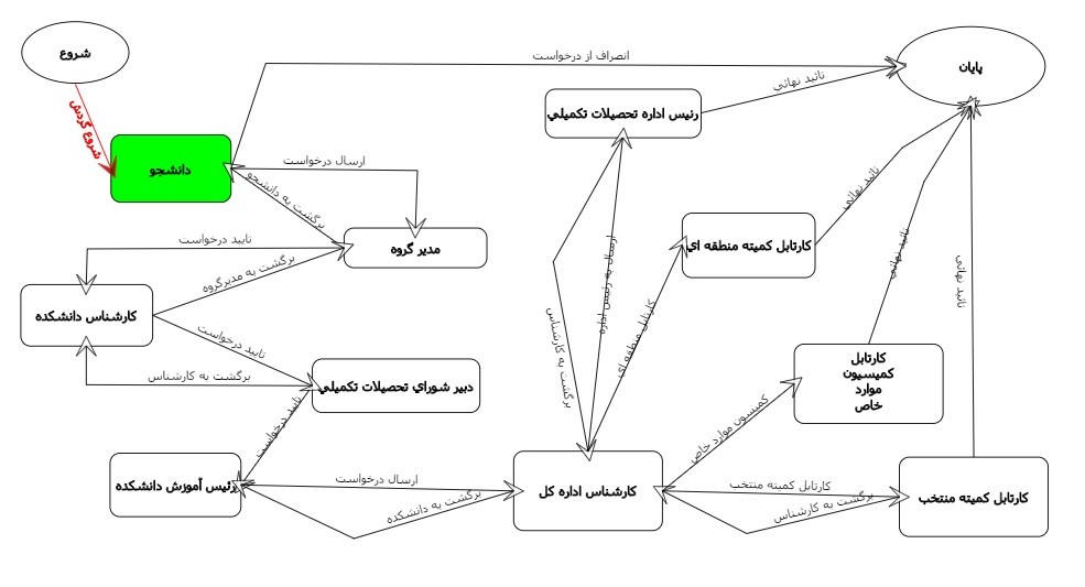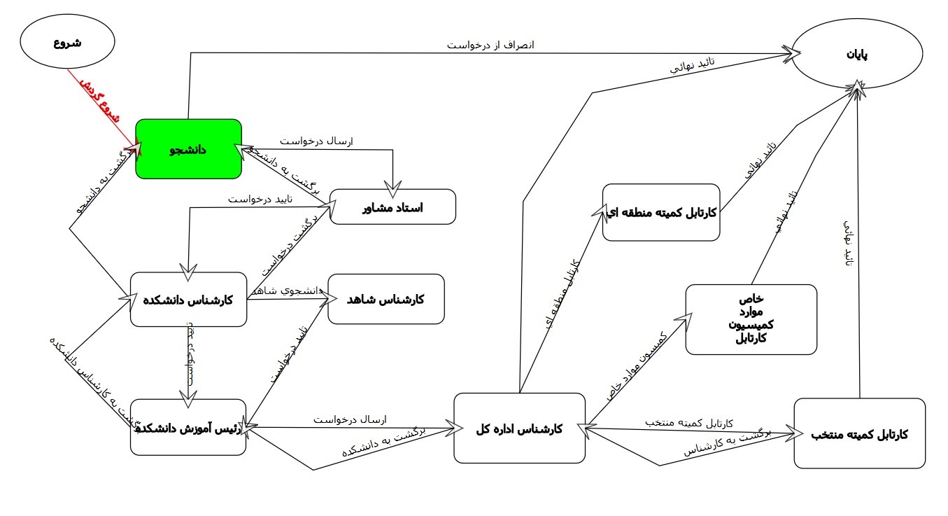 گردش کار جهت اجرای فرآیند درخواستهای آموزشی در مقاطع تحصیلات تکمیلی به صورت زیر می باشد :