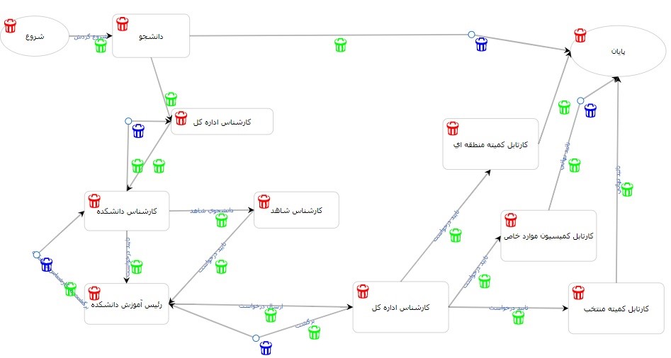 گردش کار جهت اجرای فرآیند درخواستهای آموزشی در مقاطع کارشناسی ، کاردانی ، دکتری حرفه ای به صورت زیر می باشد