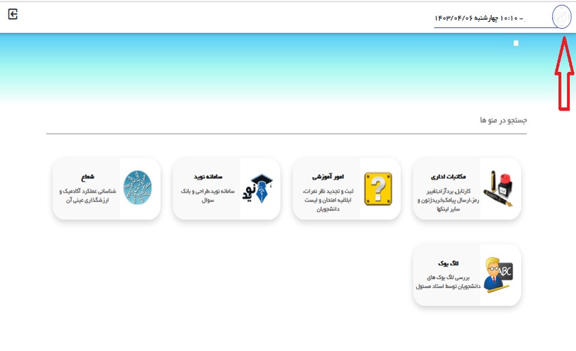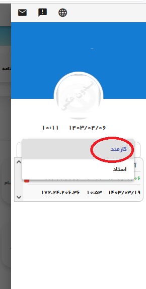 4.پس از ورود به سامانه ، بر روی دایره (عکس پرسنلی )که در تصویر زیر نشان داده شده است ، کلیک نمائید