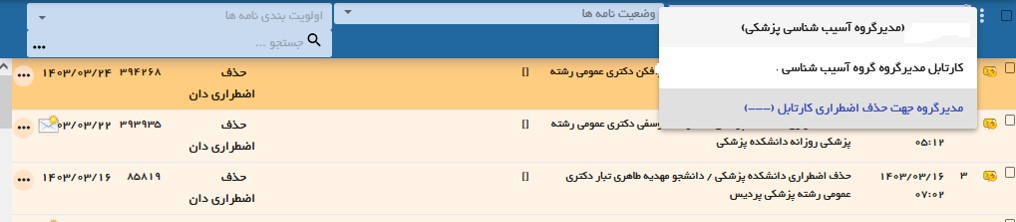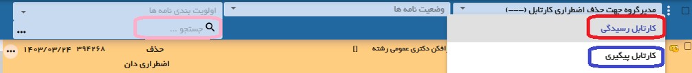 11. جستجو درخواستها درکارتابل مورد نظر، با درج شماره دانشجویی و یا نام و نام خانوادگی دانشجو در بخش جستجو امکان پذیر است